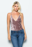 MYSTYLEMODE MAUVE CRUSHED VELVET PLUNGING V NECK SPAGHETTI STRAP BODYSUIT