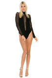 THE MYSTYLEMODE BLACK CHOKER V CUT OUT MESH LONG SLEEVE BODYSUIT