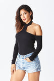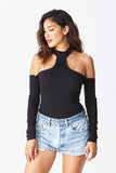 THE MYSTYLEMODE BLACK T NECK COLD SHOULDER LONG SLEEVE BODYSUIT
