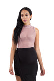 THE MYSTYLEMODE LIGHT MAUVE NETTED MOCK NECK SLEEVELESS BODYSUIT