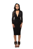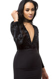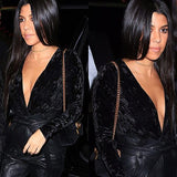 THE MYSTYLEMODE BLACK CRUSHED VELVET PLUNGING V NECK LONG SLEEVE BODYSUIT