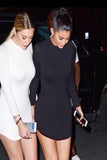 THE MYSTYLEMODE BLACK FUNNEL NECK LONG SLEEVE MINI DRESS