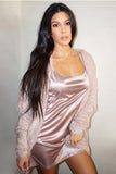 THE MYSTYLEMODE TAUPE SATIN MINI DRESS