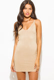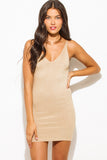 NUDE RIBBED KNIT THIN STRAP V NECK SWEATER MINI DRESS