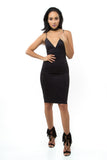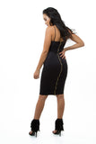 THE MYSTYLEMODE BLACK SUEDE SPAGHETTI DOUBLE LINED ZIPPER BACK MIDI DRESS