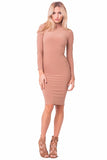 THE MYSTYLEMODE NUDE ESSENTIAL DOUBLE LINED MOCK NECK MIDI DRESS