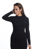 THE MYSTYLEMODE BLACK DOUBLE LINED LONG SLEEVE FUNNEL NECK MIDI DRESS