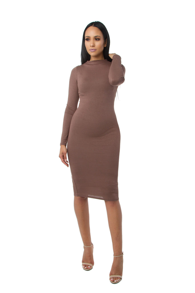 This Mystylemode exclusive is one of the must have dresses! This Midi dress has long sleeves, high funnel neck, is double lined, and not only is stretchy to fit like a glove hugging and flattering your curves, but it is super comfortable and fits to perfection. This Midi dress is classic and chic, featuring long and tight neckline. It is the perfect dress to wear anywhere you go!