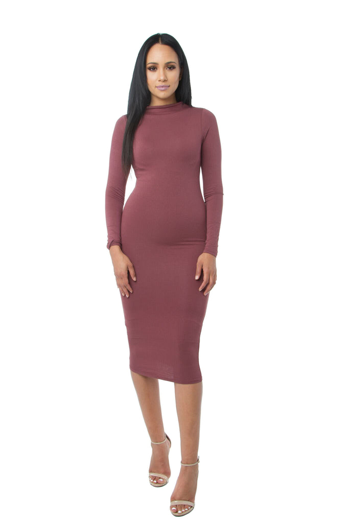 This Mystylemode exclusive is one of the must have dresses for Fall! This Midi dress has long sleeves, high funnel neck, is double lined, and not only is stretchy to fit like a glove hugging and flattering your curves, but it is super comfortable and fits to perfection. This Midi dress is classic and chic, featuring long and tight neckline. It is the perfect dress to wear anywhere you go!