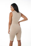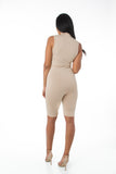 THE MYSTYLEMODE NUDE MOCK NECK SHORT JUMPSUIT WITH ZIPPER