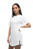 So in love with our new Menswear and Menswear for Women tees! These tees are comfy you will not want to take it off! Made of super soft cotton material. The unique long tee has a side zipper that can be worn zipped up or zipped down for a side slit!