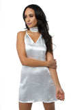 This sultry, satin slip dress is so amazing and comfortable. You will never want to take the dress off! It features a criss crossed back. The adjustable tie is the perfect touch that makes it look like you are wearing a choker without any extra effort. With this dress you will be ready to take on anything effortlessly and in style.