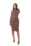 THE MYSTYLEMODE DARK MOCHA DOUBLE LINED LONG SLEEVE FUNNEL NECK MIDI DRESS