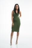 THE MYSTYLEMODE OLIVE KNIT RIBBED TANK MIDI DRESS