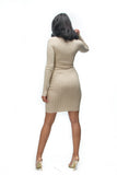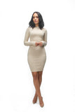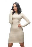 THE MYSTYLEMODE TAUPE RIBBED LONG SLEEVE KNEE LENGTH DRESS