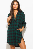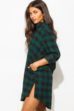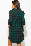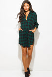 THE MYSTYLEMODE GREEN AND BLACK POCKETED FLANNEL TUNIC DRESS