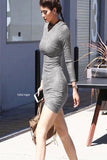 THE MYSTYLEMODE CHARCOAL GRAY LONG SLEEVE DOUBLE LINED SUEDE DRESS