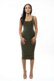THE MYSTYLEMODE OLIVE ESSENTIAL VENEZIA DOUBLE LINED TANK MIDI DRESS